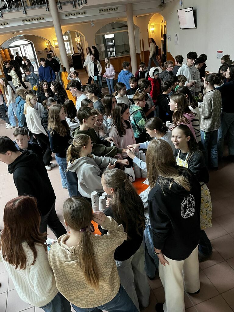 In der großen Pause wurde fair gehandelter Kakao ausgeschenkt, begleitet von weiterer Musik. Ein gelungener Jubiläumstag voller guter Energie – und ein starkes Zeichen dafür, dass die St. Ursula Schulen auch in den kommenden Jahren ihren Weg für eine gerechtere Welt weitergehen werden. Die nächsten 10 Jahre können kommen!
