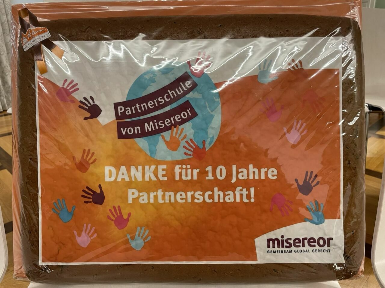 Als Gäste von Misereor waren Suzanne Lemken und Karin Hülsmann vor Ort. Sie würdigten das Engagement der Schüler:innen in ihren vier Beiträgen im Laufe des Tages und überreichten der Schulgemeinschaft als Geschenk eine große Aachener Printe – ein Symbol der Verbundenheit und Anerkennung. Dabei wurde deutlich, wie wertvoll und wirksam das Engagement der St. Ursula Schulen ist – weit über die Schule hinaus und mit globaler Bedeutung.